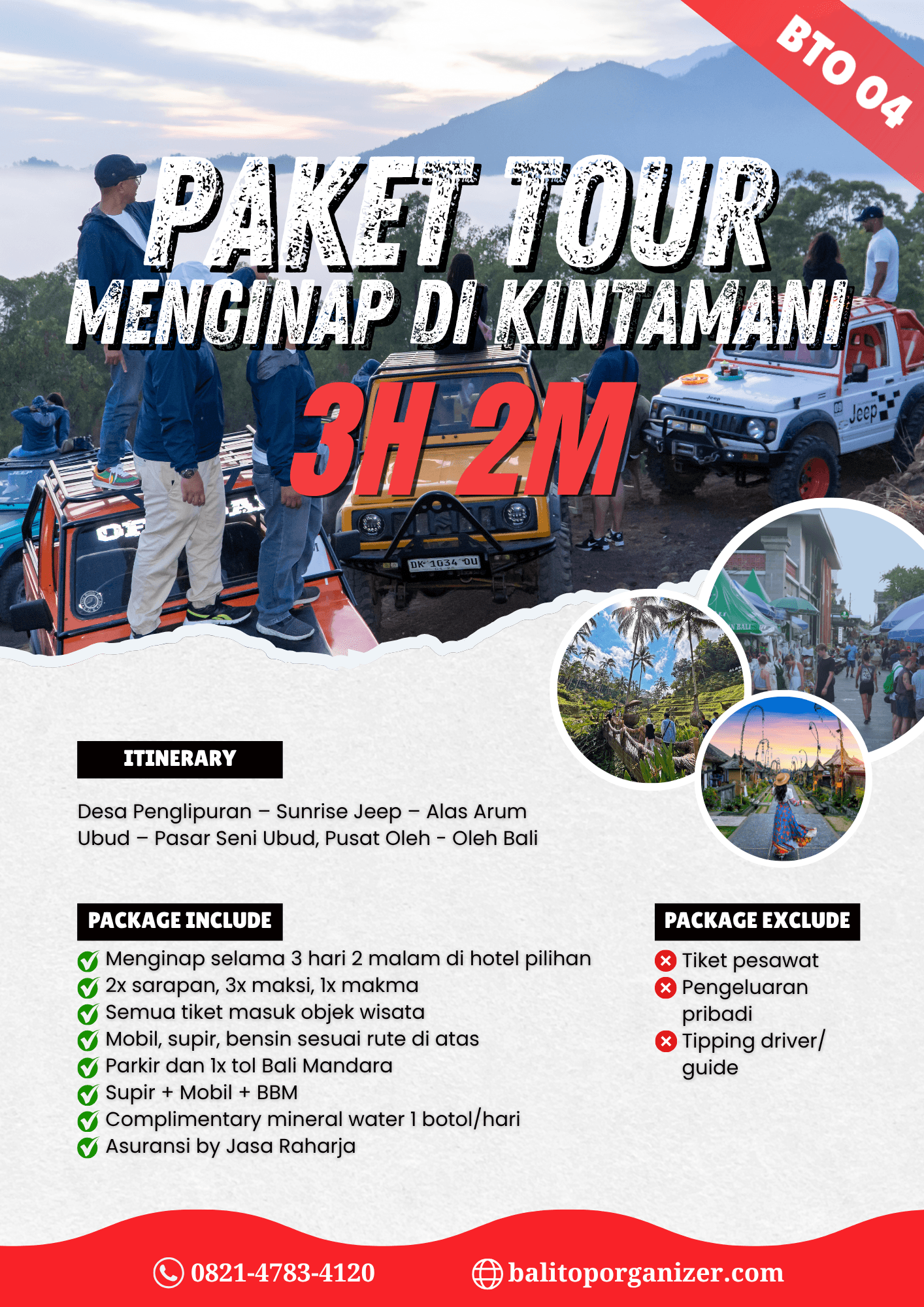 Harga Paket Tour 3H 2M + Menginap Di Kintamani – BTO 04
