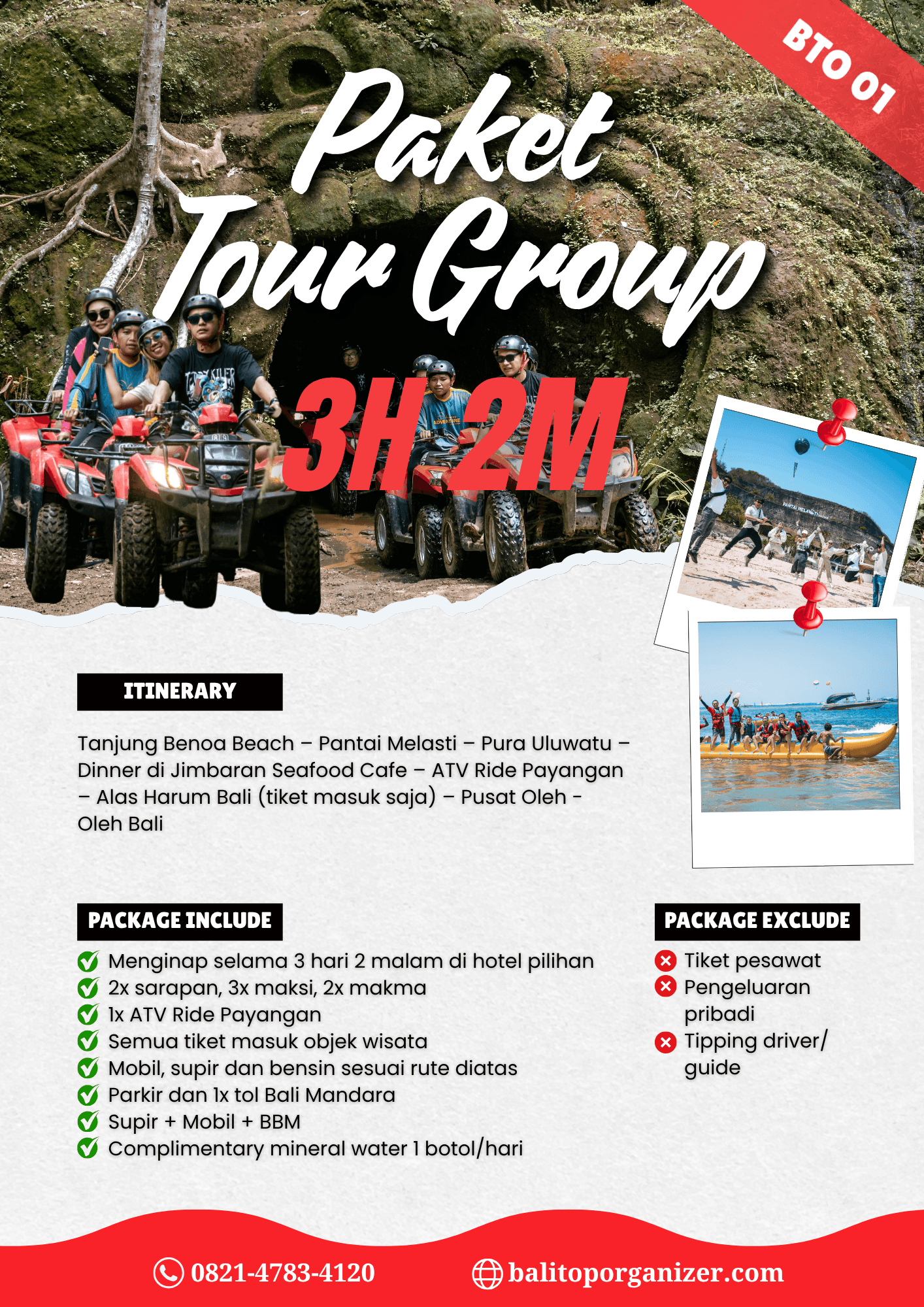 Paket Tour Group Bali 3H 2M + ATV – BTH 503 Opsi B